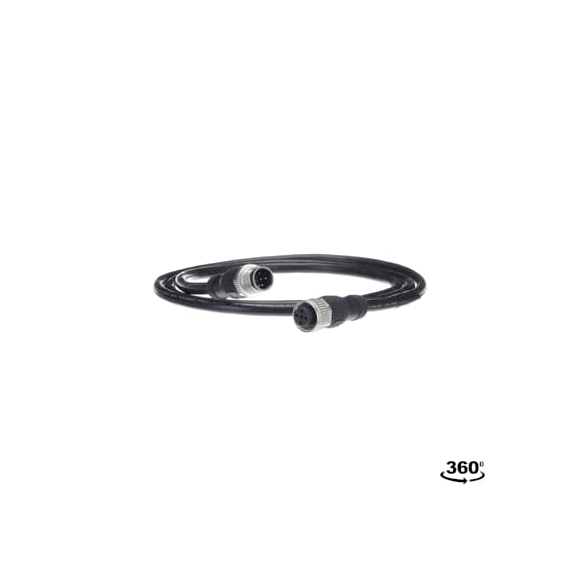 M12-C112 to ekranowany kabel z prostymi złączami męskimi i żeńskimi M12-5. Pięć żył ma przekrój 0,34 mm². Ekran jest podłączony do pinu 3 (0 V) złącza męskiego. Osłona wykonana jest z czarnego PVC. Długość kabla wynosi 1 metr.