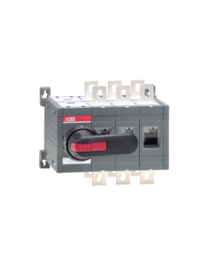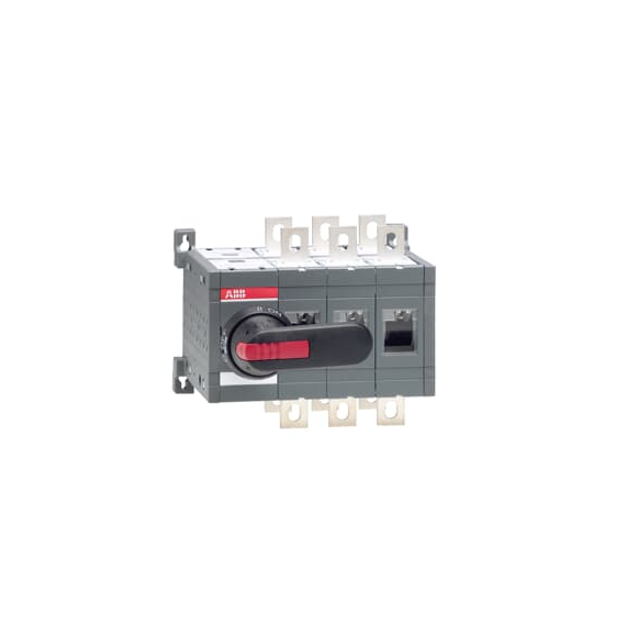 OT400E03CP Przełącznik (I-0-II) 400A, 3P, napęd z przodu, z wałkiem i czarną rączką IP65, montaż na płycie montażowej, zestaw ś