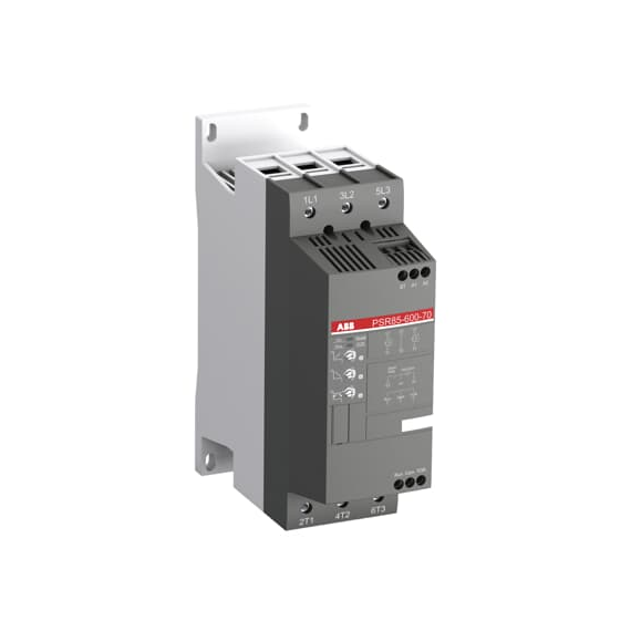 Softstart PSR105-600-70 / 55kW przy 400V, pozwala w łatwy sposób zoptymalizować prąd rozruchowy pod kątem obciążenia, zastosowania oraz wielkości silnika. Znamionowe napięcie robocze maks. Ue=600V, znamionowe sterownicze napięcie zasilania Us=100,..240V AC,.